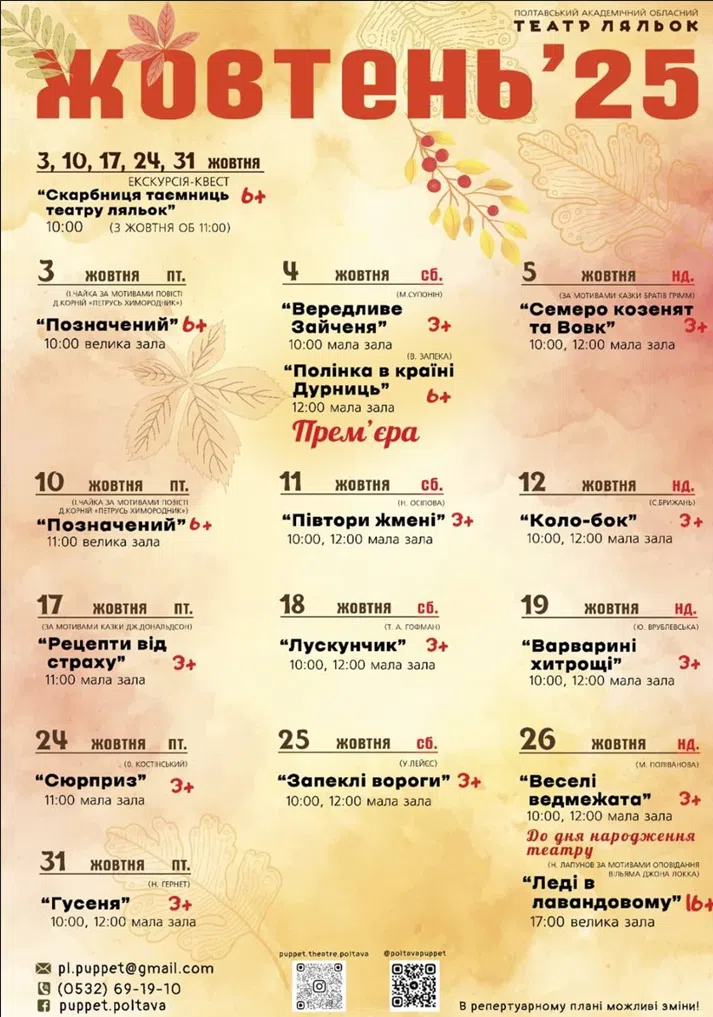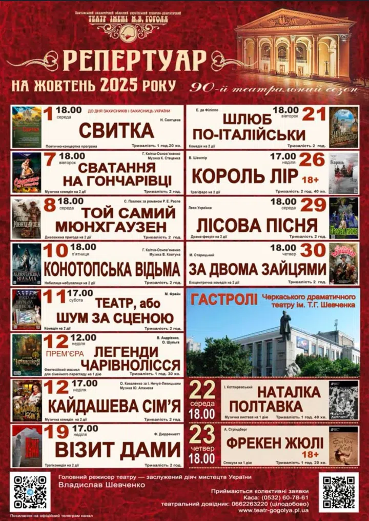 Більше інформації про репертуар – на офіційних сайтах закладів та їхніх сторінках у соціальних мережах.