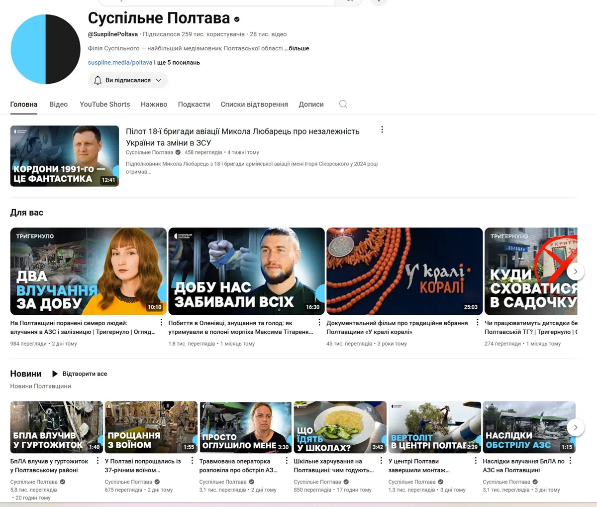 Також тут роблять сюжети про те, як живуть регіони на Полтавщині. Цей канал оновлюється рідше, аніж канал інформаційного марафону, - сюжети з'являються раз на кілька днів.