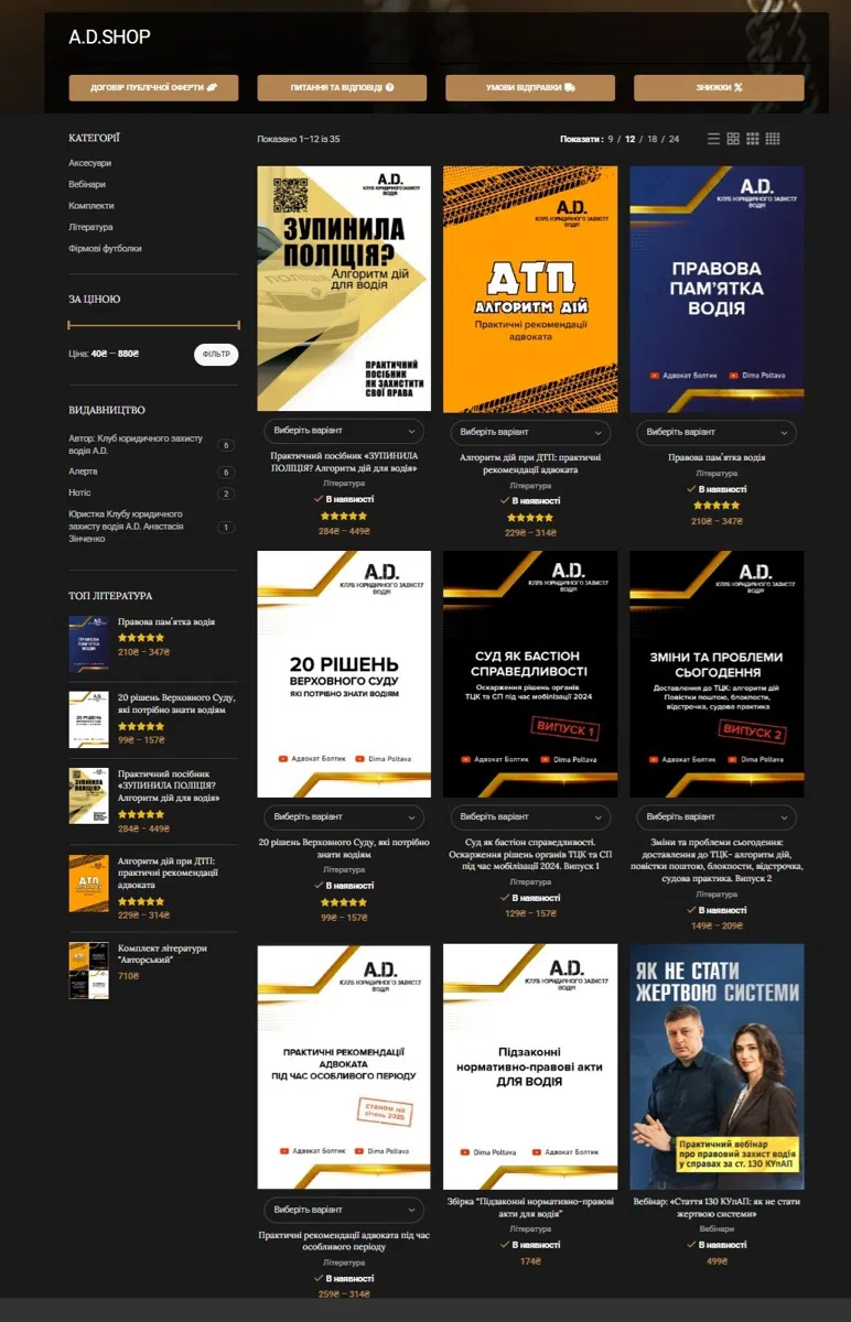 У цьому клубі пропонують членство і платні пакети консультацій від 1199 до 21 тисячі гривень. Так, вони створюють і продають літературу та вебінари про права водіїв. Наприклад, вебінар “Стаття 130 КУпАП: як не стати жертвою системи” можна придбати 499 гривень.