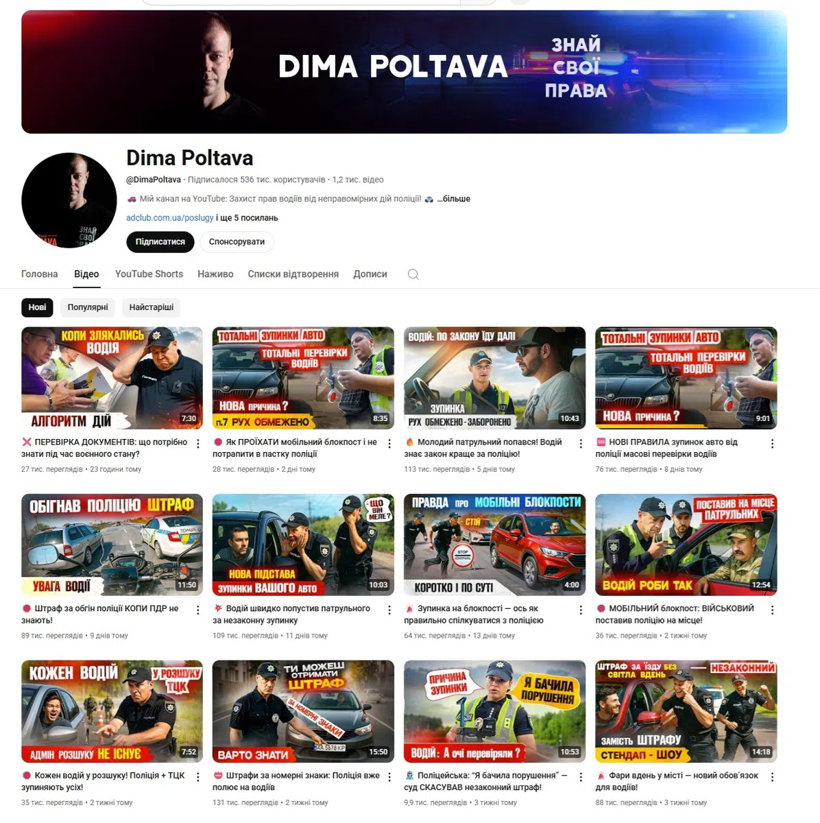 Канал “Dima Poltava” веде Дмитро Бурмака, колишній член виконавчого комітету Полтавської міської ради, колишній керівник КП "Полтава-сервіс". Він створив свій канал у січні 2014 року і наразі має 536 тисяч підписників. Контент подібний до контенту на каналі Антона Болтика, але у Діми Полтава більше реклами спільного з Болтиком Клубу для водії.
