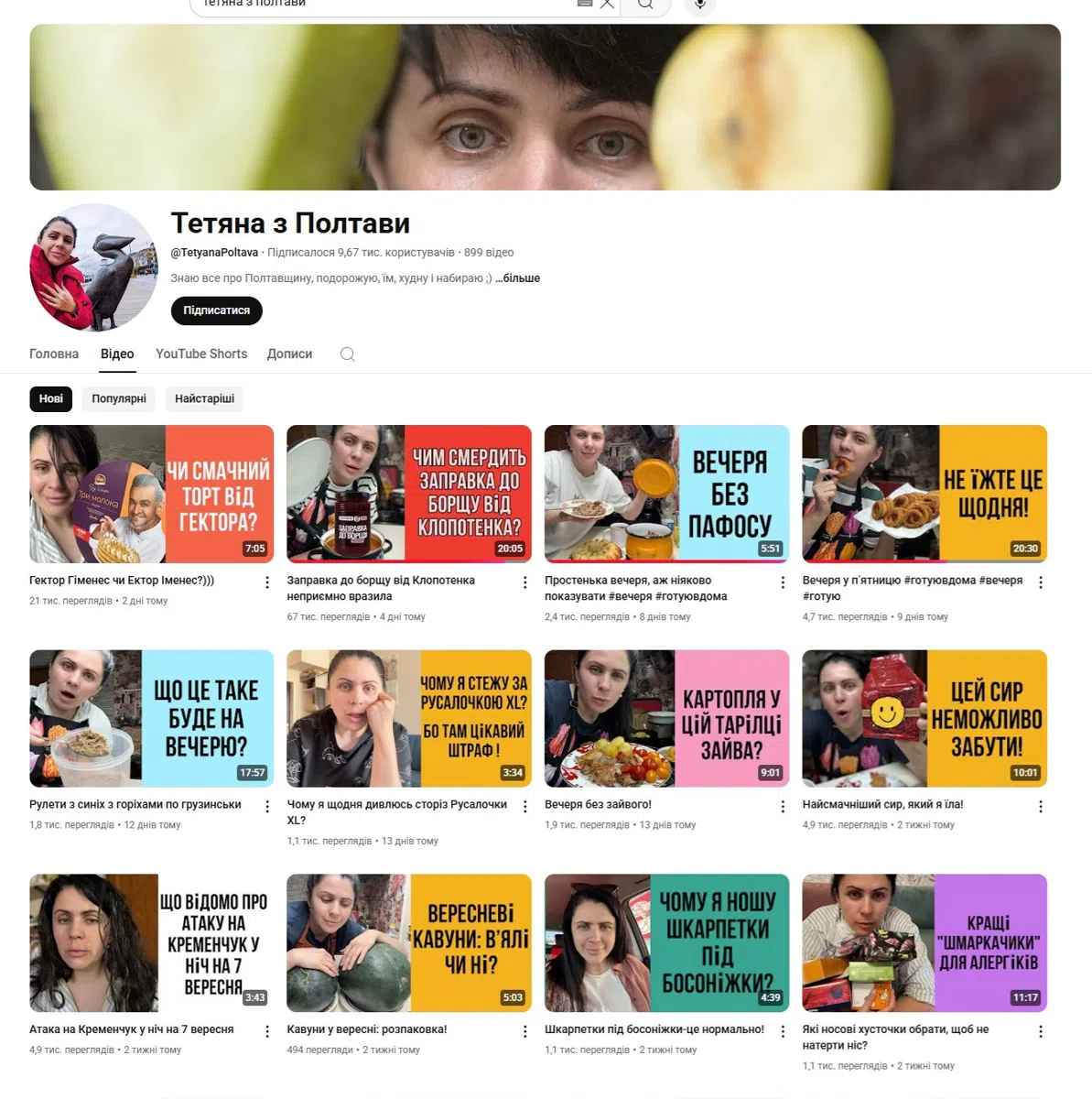 Скриншот з YouTube-каналу “Тетяна з Полтави”