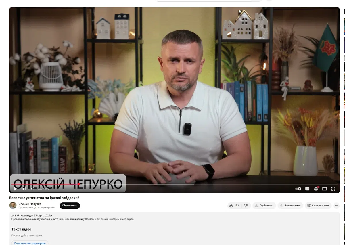 Скриншот з YouTube-каналу “Олексій Чепурко”