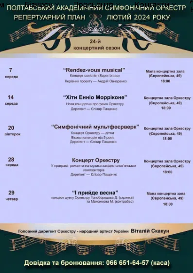 Симфонічний оркестр, обласна філармонія та театр ляльок оприлюднили репертуарний план виступів на лютий: