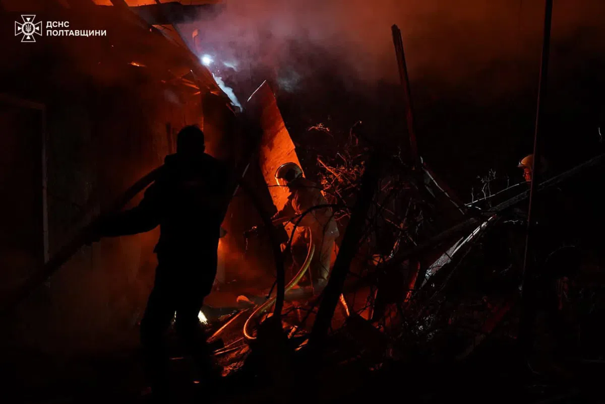 Увечері 31 жовтня у Полтавському районі ворожі безпілотники завдали ударів по цивільній інфраструктурі. У результаті пошкоджені три житлових будинки та господарчу споруду. Врятували двох людей. Рятувальники дістали їх з палаючого будинку, повідомив начальник Полтавської ОВА Філіп Пронін.