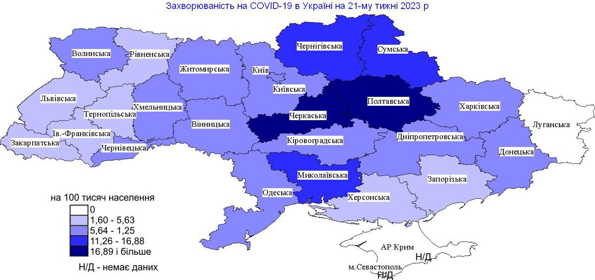 З початку пандемії на 25.05.2023 в області захворіло 233695, нових за тиждень 311 (за попередній тиждень 369).