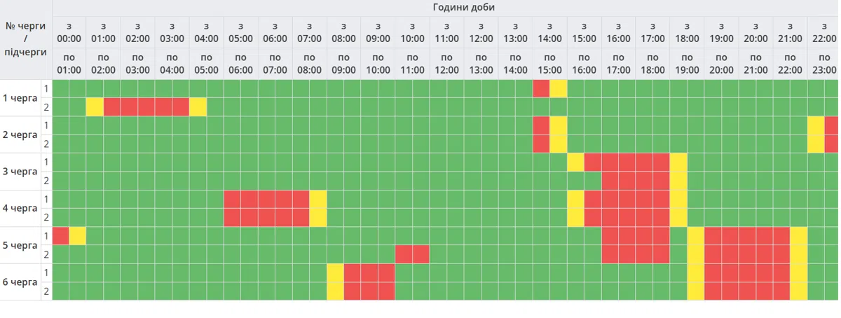 з 18:00 по 22:00 запроваджений в обсязі 2 черг;