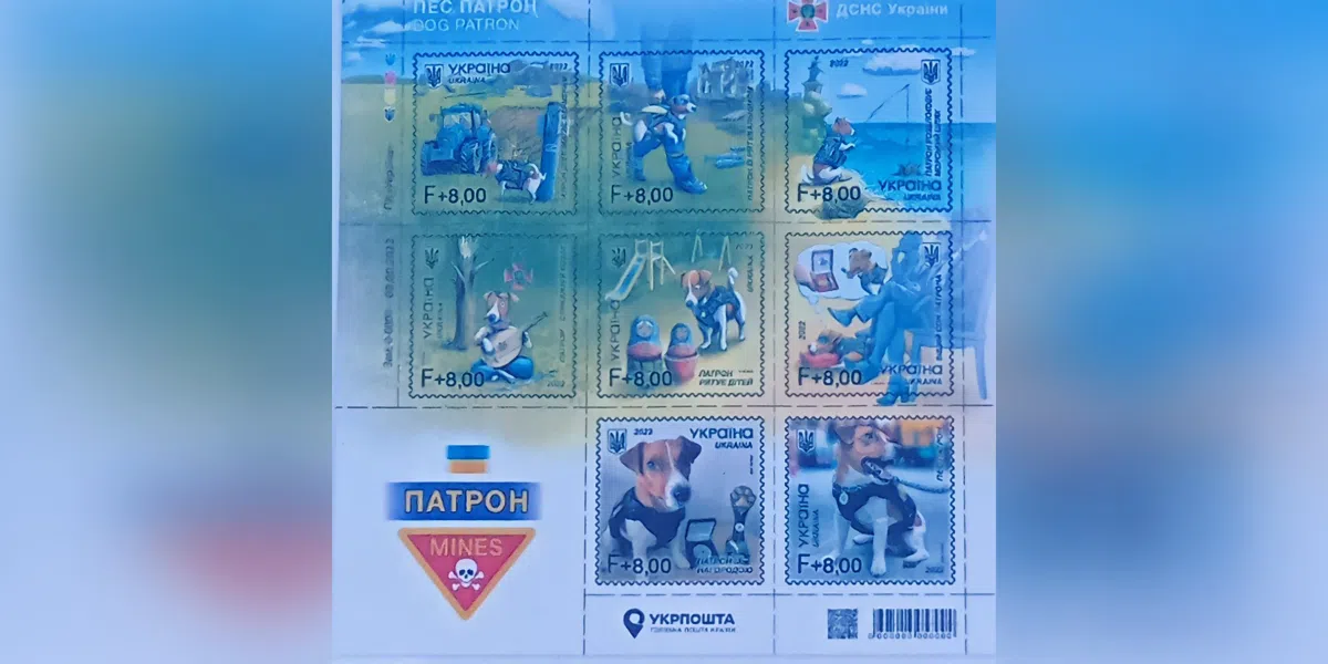 1 вересня о 9:30 відбулося погашення незвичайної воєнної марки. Вона присвячена рятувальникам та їхньому теперішньому символу песику-саперу Патрону.