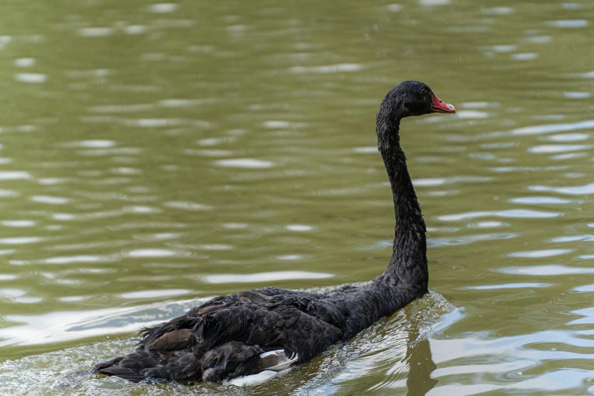 Один із чорних лебедів у Полтавського дендропарку, проковтнув рибальський гачок.